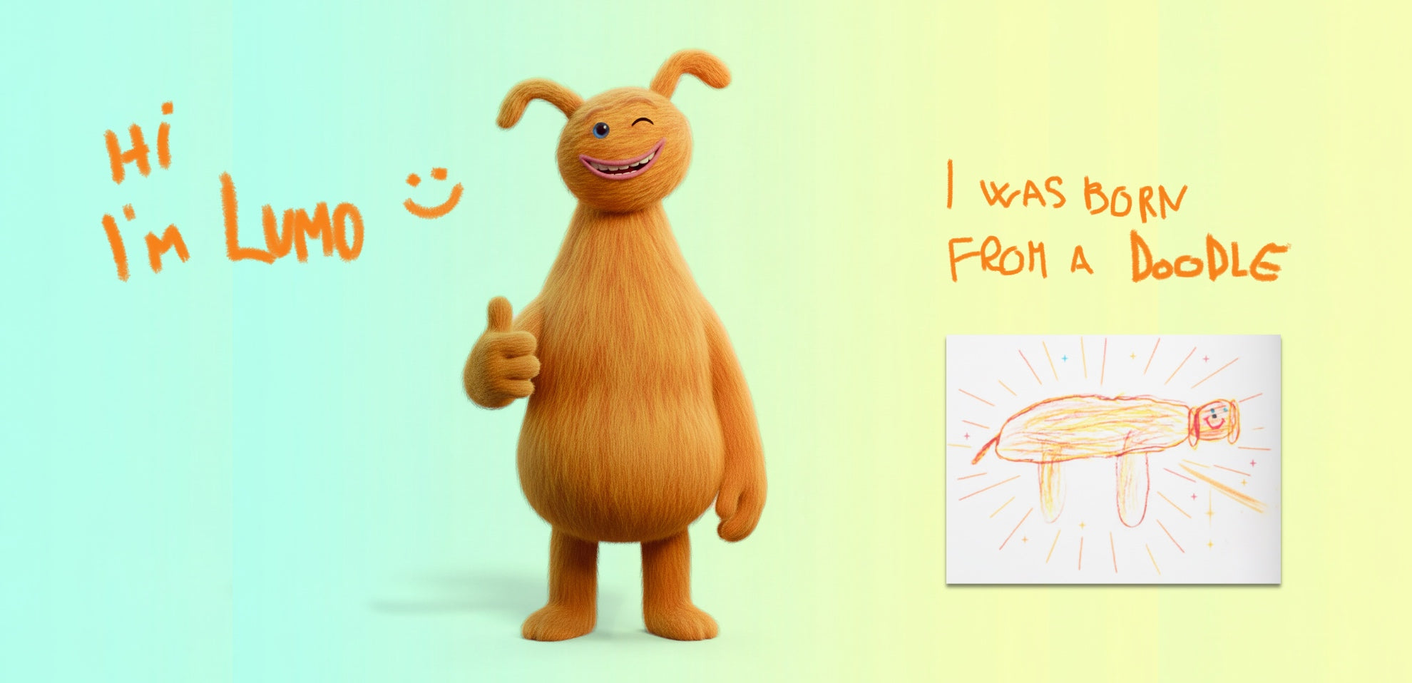 Every story needs a companion, and ours is Lumo: the fluffy, silly, yellow creature that children bring to life with the Prism.