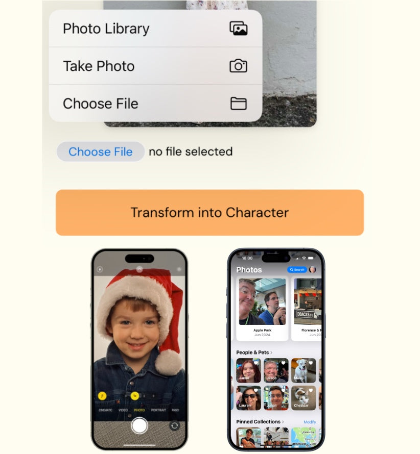 Choose from your library, or take directly a photo of your kid !
